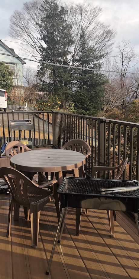 バルコニーでBBQ(バーベキュー)ができる貸別荘です。